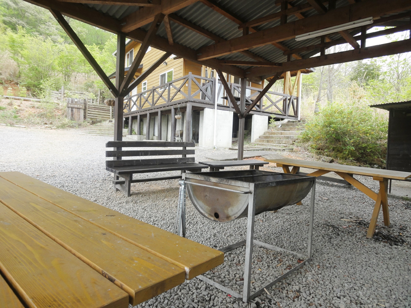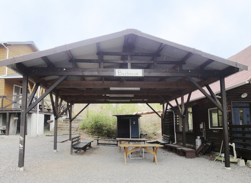 バーベキューをするお客様用のスペースです。屋根があるので少しの雨でも大丈夫です。