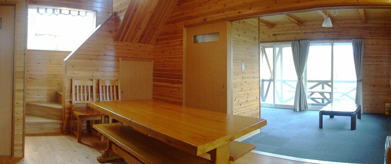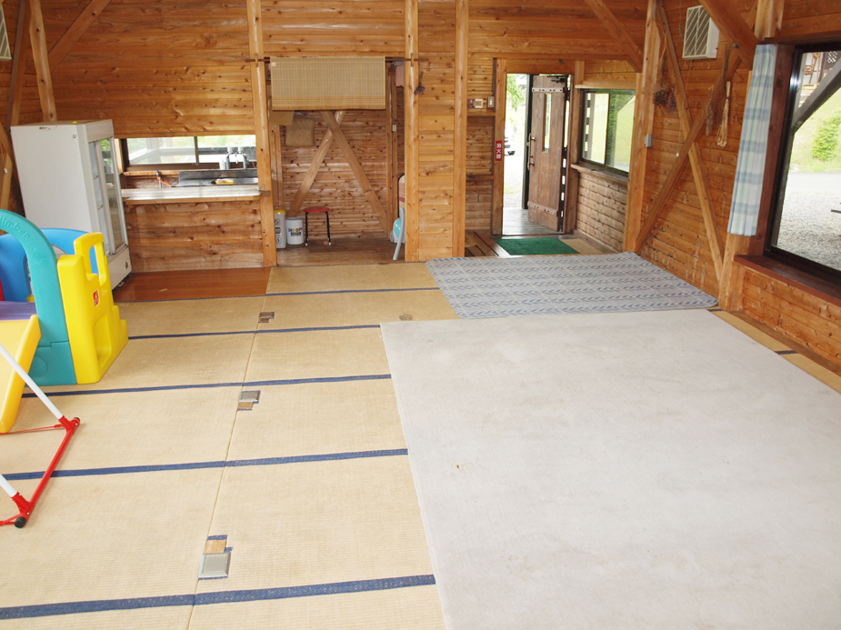 BBQ場の隣にある24畳の広いスペースです。 宿泊の方のお食事の後の2次会やミーティングスペースとしてご利用下さい。