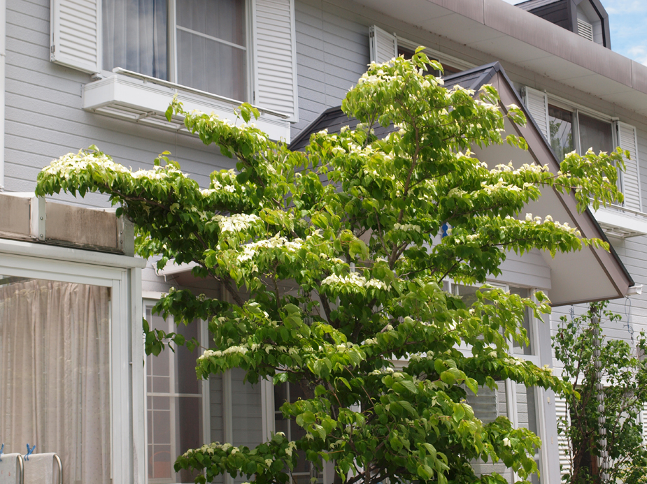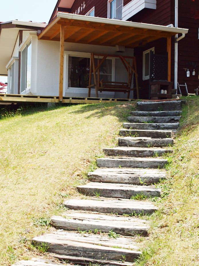 やまぼうし1から少し坂道を上って向かい側にある茶色い建物です。
